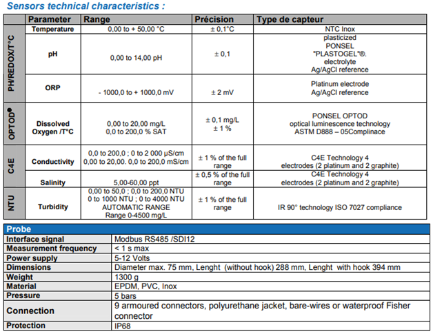 Multiparameter probe Oxygen/pH/Turbidity 3m TRIPOD